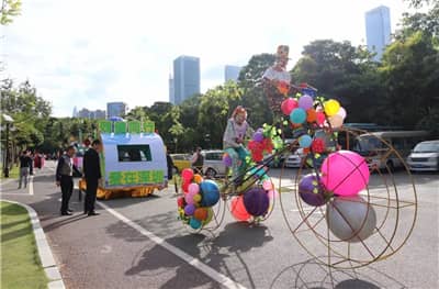 深圳狮子会2017-2018年度会长田王星、第一副会长马敏、副监事长廖荣辉陪同深圳市政府副市长,深圳市残联党组书记、理事长侯伊莎,深圳市残联副理事长宋锐、彭迎九进行花车巡游。