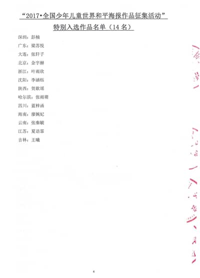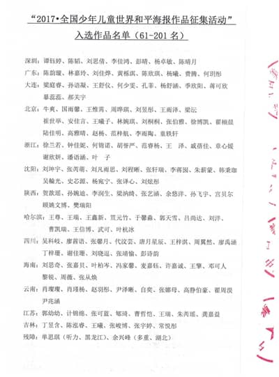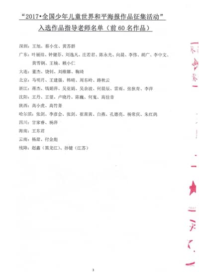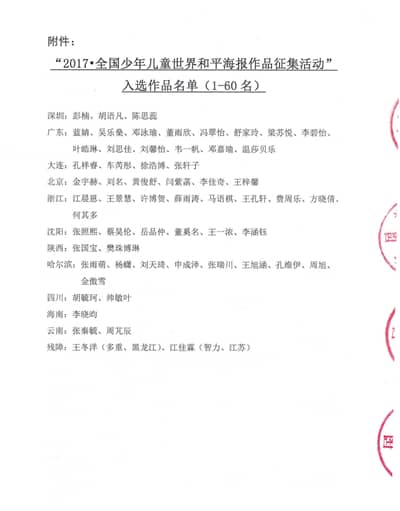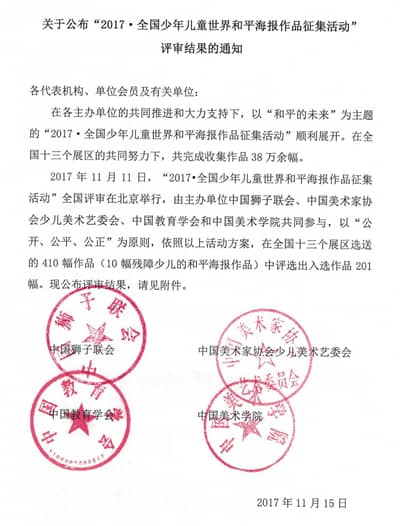关于公布“2017•全国少年儿童世界和平海报作品征集活动”评审结果的通知(附名单)