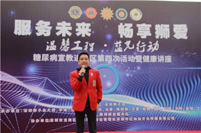 王道明致欢迎辞。黄力生介绍到场嘉宾。柯德海介绍糖尿病宣教项目,希望狮友及社区居民通过本次活动增进糖尿病防治意识,关爱亲友的身体健康。