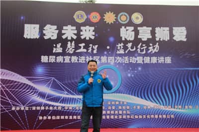 2018年2月4日,立春之际,深圳狮子会2017-2018年度第四场糖尿病宣教活动在龙岗中心城紫薇社区顺利举行。狮友们冒着凛冽的寒风向社区居民宣讲糖尿病防治知识,为社区居民写春联,服务经费2万余元。