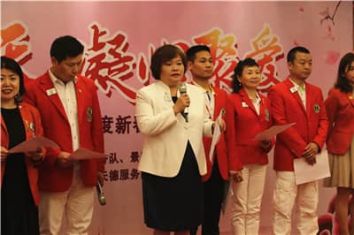 马敏第一副会长深情感言,对第六分区取得的成绩表示肯定,感恩“家人们”的大爱付出。她表示,第六分区各服务队积极响应区会号召,立足本地,扎根社区服务活动,倾心打造了深圳狮子会本年度品牌项目——“最美环卫工”关爱环卫工人活动,致力于让深圳变得更美丽;天佑英才助学项目让莘莘学子实现求学梦想,开启别样人生;连续八场1000人以上的“中国梦”残疾人感恩励志演讲让无数人潸然泪下,鼓励残疾人朋友自强不息、顽强拼搏。她希望,第六分区的狮友们携手播撒大爱,为世界带来更多温暖。