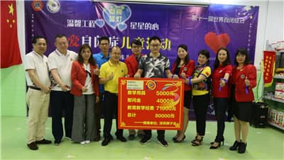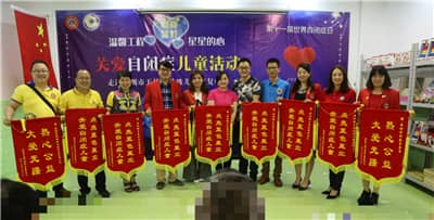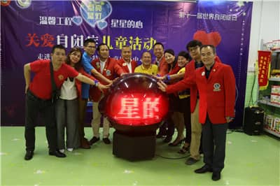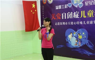 为迎接第十一个“世界自闭症日”,响应中国狮子联会关于开展“温馨工程·点亮蓝灯”关爱自闭症儿童活动的号召,帮助自闭症儿童建立自信、融入社会,4月2日,由深圳狮子会主办,锦绣、坪山、亮瞳服务队承办,华悦、凤凰、莲花山、东方玫瑰、景峰、彩田、蓝天、盐田等服务队,深圳华科教育、深圳市科创联电脑科技有限公司等单位协办的“温馨工程·星星的心”关爱自闭症儿童活动在深圳市天使心特殊儿童康复中心举行。活动向康复中心捐赠价值5000元的教学用具,并捐赠4000元慰问金及7.1万元教学经费,服务经费8万元。狮友们与康复中心的“星星”们亲切交流,度过了快乐而温馨的一天。