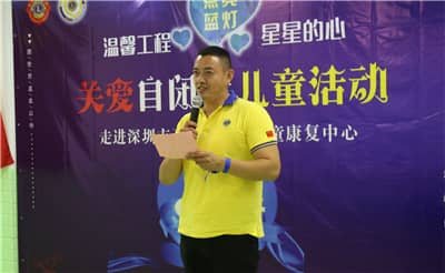 田王星会长发言,感谢各服务队的支持,感恩老师、家长及小朋友的参与。他表示,中国狮子联会已号召全国14个地区开展关爱自闭症活动,深圳狮子会也将一如既往为自闭症儿童关爱活动搭建更多参与平台,让孩子们更加快乐地成长。他希望,通过这次活动,引导更多社会人士伸出双手帮助这些“星星的孩子”开阔视野、丰富知识、建立自信、融入社会。