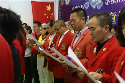 田王星会长、彭道坚总务长等领导狮友们共同上台推动启动球,正式启动“温馨工程·星星的心”关爱自闭症儿童活动。随后,全体狮友一同宣读关爱自闭症倡议书,呼吁更多社会人士了解、关注并帮助自闭症患者,为自闭症患者点亮蓝灯、传递大爱、温暖“星星”的心。