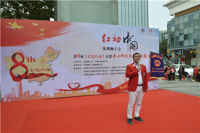 活动在喜气洋洋的暖场音乐中拉开序幕。蓝欲晓主任、杨汉坤主席、张立忠、深圳市美宜多运营管理有限公司总经理秦总分别致辞,高度肯定了这个已席卷全国的社区品牌公益项目。热情洋溢的讲话赢得了现场此起彼伏的掌声。随后,全体领导狮友及嘉宾共同移步舞台,宣读《红色行动倡议书——假如生命没有了红色》。气势磅礴、充满着大爱情怀的诗篇唱响在广场上每个人的心里。