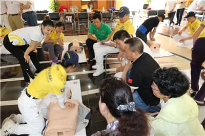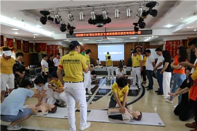 银湖服务队沈艳秋介绍,“救在你身边”急救技能普及公益项目由银湖服务队发起,以“关爱生命”为主题,致力于提高全民急救普及率,增强市民的急救意识,让更多人掌握基础的急救知识及技能,为挽救生命争取宝贵的时间。为做好急救技能普及公益项目,银湖服务队专门成立以2017-2018年度队长黄远雄为组长,崔杰、王成、沈艳秋及黎中钏等狮友为成员的项目执委会,全力做好项目策划、执行、宣传和推广工作。深圳市深南应急救护发展中心理事长、深圳赛场救护志愿队创始人楚南提到,大部分人遇到心脏骤停患者,首先会拨打120。但当救护车到达时,患者往往已错过最佳的抢救时间。他认为,提高心肺复苏普及率、提升全民急救能力刻不容缓。