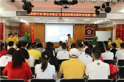 深圳狮子会2017-2018年度会长田王星、总务长彭道坚,专区主席郑和华,分区主席邬玉琼、谭飞、黄少芳等领导狮友,各服务队狮友代表及深圳市深南应急救护发展中心专业导师等50余人参加活动。活动由沈艳秋主持。