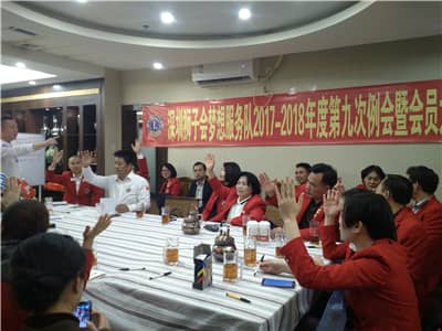 2018年3月11日,深圳狮子会梦想服务队2017-2018年度第九次例会暨推举大会在南山大道一壶天茶馆顺利召开。深圳狮子会2017-2018年度导狮团副团长、梦想服务队创队队长齐克林,艺术团副团长林小红,梦想服务队队长刘卫军、第一副队长赖金花、第二副队长甘能林、第三副队长古导明、财务温丽蓉、总务彭初胜等25人出席会议。深圳狮子会副秘书长、梦想服务队指导狮兄郑玉宽,大自然服务队队长李俊峰、景峰服务队创队队长朱峰列席会议。会议由刘金来担任大会主席,孙小晗主持。