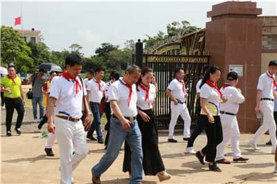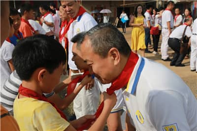 5月19日上午9点,狮友们迈着整齐的步伐来到孟岗小学举行捐赠仪式。一到学校,孩子们便排着整齐的队伍,为狮友们佩戴红领巾。
