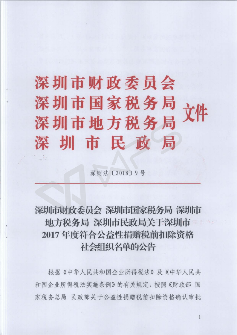 附件:关于深圳市2017年度符合公益性捐赠税前扣除资格社会组织名单的公告