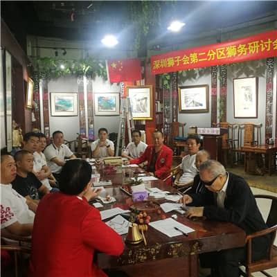2018年6月10日,深圳狮子会2018-2019年度第二分区候任领导狮友狮务研讨会在南山区深圳湾体育中心子非鱼艺术馆召开。深圳狮子会2017-2018年度会长田王星,2018-2019年度候任第二副会长卢志强,前会长戴同鑫,候任第一专区主席廖荣辉、候任第二分区主席操应旺,和平服务队候任队长张伟忠、银湖服务队候任队长崔杰、幸福服务队候任队长唐三、岭巅服务队候任队长施心鸿,彩虹服务队候任队长陈锡燕、前队长陈秀芳,幸福服务队候任第一副队长张胜洲、小同服务队候任第一副队长江山坚等14人出席会议。会议由操应旺担任大会主席,由施心鸿主持。