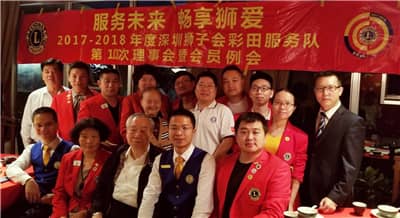 2018年4月27日,深圳狮子会彩田服务队2017-2018年度第十次例会在罗湖区静怡茶馆召开。深圳狮子会前会长、彩田服务队创队队长戴同鑫,彩田服务队队长邱恒英、第一副队长尹本辉、第二副队长周胜灵、第三副队长劳廉旭、秘书曹人忠等16人出席会议。深圳狮子会2017-2018年度监事罗俊平,泊爱服务队队长苏有华、龙城服务队队长郑林玉、大自然服务队队长李俊锋列席会议。会议由刘志强担任大会主席,由沈祖锋主持。