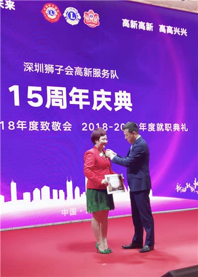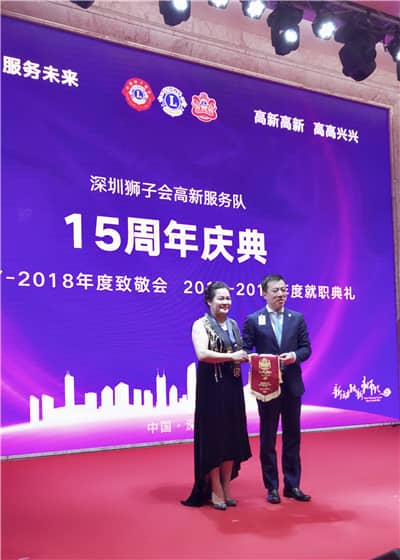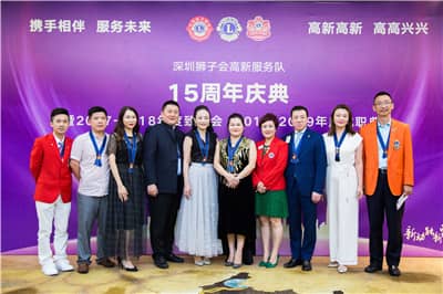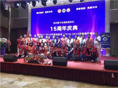 2018年6月29日,深圳狮子会高新服务队15周年庆典暨2018-2019年度换届就职典礼在南山区三诺大厦5楼会议厅举行。深圳狮子会2017-2018年度监事长吴晓明、上届会长施建永,前会长林桃、郑德刚,纠察长邓毅、第三专区主席王燕、第九分区主席景苗军、第十分区主席徐秋彬,资政毕永涛,集邮俱乐部主席佟昕,高新服务队狮友、家属及社会爱心人士共140余人出席典礼。庆典由马华达担任大会主席,由陈瑛、王博主持。