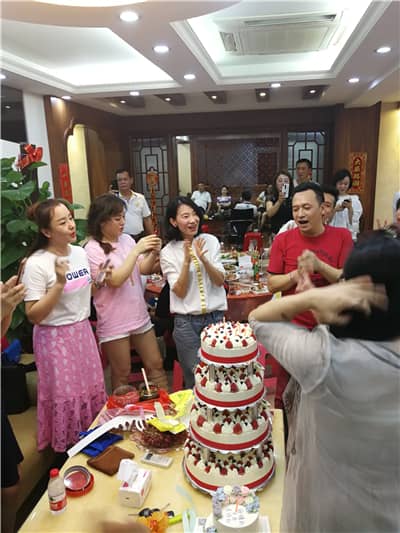会后,狮友们一同为5月份过生日的陈群好、文燕梅、王宏斐送上生日祝福。