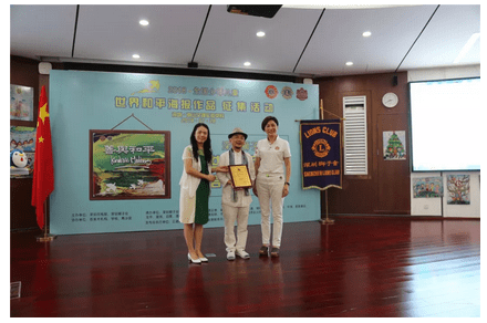 彭迎九副理事长代表市残联对积极参与和平海报征集活动的狮友表示衷心的感谢,希望深圳狮子会不仅要把活动举办好,还要把“正己助人”的精神广泛传播,同时,加大表彰力度,以奖励的形式让更多的机构参与到活动中来,从活动中感受和平的真正意义。