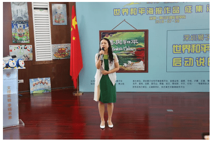 吴希福校长在发言中说到,文理实验学校作为2017年文化部及联合国组织授予的“世界和平教育示范基地”,一直秉承“和平教育”的理念,把和平教育与教学理念相结合。他以亲身经历讲述了和平对于世界的意义所在,提出了仁爱之心的理念,把此次和平海报征集活动说明会推上高潮。