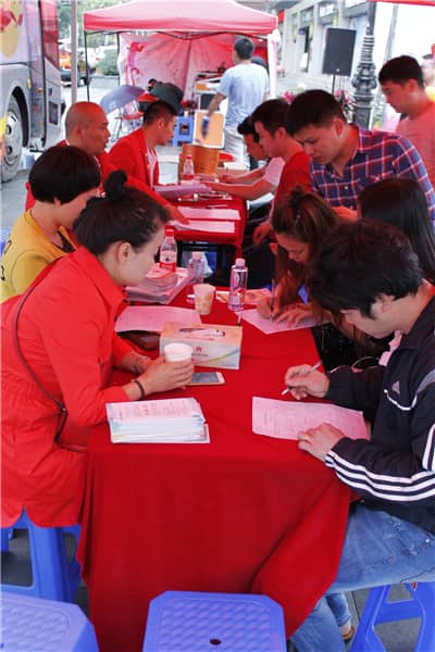 上午八点半,深圳市血液中心的献血车如约而至,捐血物品还未摆放就绪,几位热心的大哥大姐已围坐在接待台前咨询献血的相关问题,生怕被人抢走了位置。热心的大姐在狮友的指引下填写捐血资料,边填资料边给自己的亲朋好友打电话,邀请他们来献血。大姐说到,自己是附近工厂的居民,身边的很多人都喜欢献血,乐于为其他人做些有意义的事,但也常苦恼于附近没有固定的献血点。八卦岭服务队在厂区附近开展献血活动满足了他们一个小小的愿望。