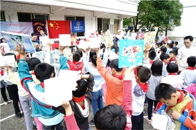 田庄小学校长毛剑文致欢迎词,向出席捐赠仪式的领导、狮友及爱心人士致以崇高的敬意!当地镇政府副镇长感谢社会各界爱心人士对田庄小学师生的热心帮助,勉励孩子们向正道服务队狮友们学习,与善同行,共同传递社会正能量!