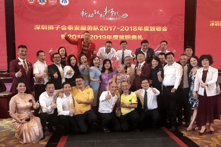 2018年7月10日,深圳狮子会泰安服务队2018-2019年度换届就职典礼在福田区香蜜湖好世界海鲜大酒楼顺利举行。中国狮子联会副会长林子钰,深圳狮子会2018-2019年度会长马敏、上届会长田王星、第一副会长翁华,前会长施建永、吴晓明,秘书长曾石养、总务长郭永勇、纠察长彭道坚、常务副秘书长郑和华、副秘书长李锋,专区主席廖荣辉、聂向东、徐秋彬、景苗军,分区主席谭飞、温瑶丽,会长特别助理周婷,泰安服务队狮友、狮友家属及各界爱心人士等260人出席晚会。晚会由廖仲新、杨仟亿主持。