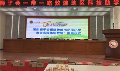10月9日下午,马敏会长一行60名狮友走进了敦煌市北街小学。为响应习近平总书记关于“推动共建‘一带一路’,走深走实造福人民”的讲话精神,深圳狮子会对北街小学进行科技助学,向学校捐建了1间“春天多媒体电教室”,服务经费20万元。