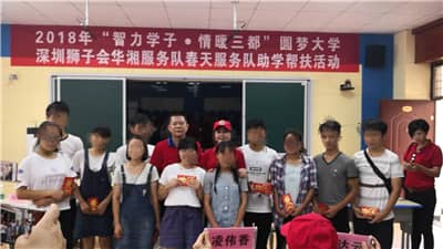 2018年8月22日,深圳狮子会春天等服务队在贵州省三都县民族学校开展“智力学子·情暖三都·圆梦大学”助学活动,向三都县50名贫困学生每人捐赠1000元助学金,服务经费5万元。