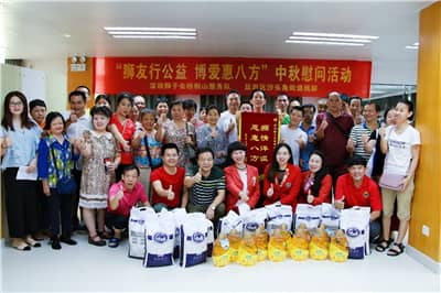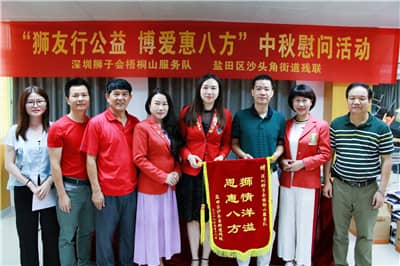 2018年9月20日,深圳狮子会梧桐山服务队联合沙头角街道职康中心开展“师友行公益•博爱惠八方”中秋慰问活动,为212户残疾人家庭捐赠大米和油等生活物资,服务经费3.074万元。沙头角街道残联理事长侯桂鸿,梧桐山服务队队长陈莉莉及6名狮友参加活动。