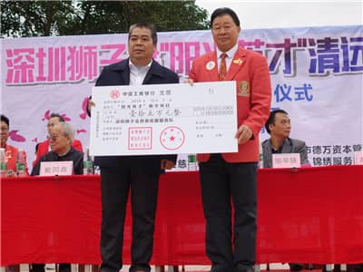 清新区副区长邹早银、区教育局副局长林建明,深圳狮子会2018-2019年度前会长戴同鑫、第一专区主席廖荣辉,公共关系与宣传委员会主席唐浩智,锦绣服务队队长孙金平、创队队长邱兆军,华天服务队队长赵安妮,慈善收藏服务队上届队长郑喜根、第一副队长余小平、第二副队长陈金明、第三副队长李薇等领导狮友、狮友亲属、爱心人士及学校师生共500余人参加活动。活动由廖荣辉担任领导小组组长,唐浩智担任总统筹,邓媚心担任大会主席,由陈金平及校方学生共同主持。活动得到了深圳市世华居物业管理有限公司、深圳市鑫普宜投资发展有限公司、九漆堂(深圳)文化产业投资有限公司、河南海纽联合会计师事务所、深圳市狮商精品有限公司、深圳美计文化传媒有限公司、语度控股(深圳)有限公司的大力赞助和支持。