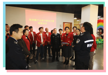 本次活动由深圳狮子会、深圳市公安交通警察局主办,深圳狮子会福爱服务队协办。深圳市公安交通警察局副局长冯道科、政秘处副处长唐湘晖、人事科科长卢坤杰,深圳狮子会2018-2019年度会长马敏、总务长郭永勇、副秘书长荣静、第四专区主席杜鹏,分区主席谭飞、茹春旭、李春畅、蔡敏、赵云鹏,福爱服务队狮友等20余人参加活动。