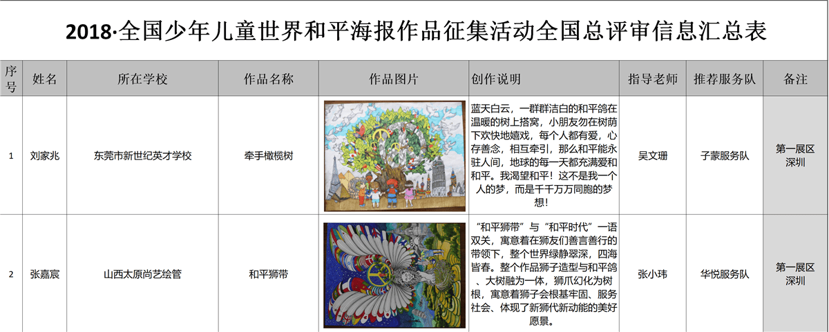 2018·全国少年儿童世界和平海报作品征集活动全国总评审信息汇总表(A组特等奖、一等奖名单)