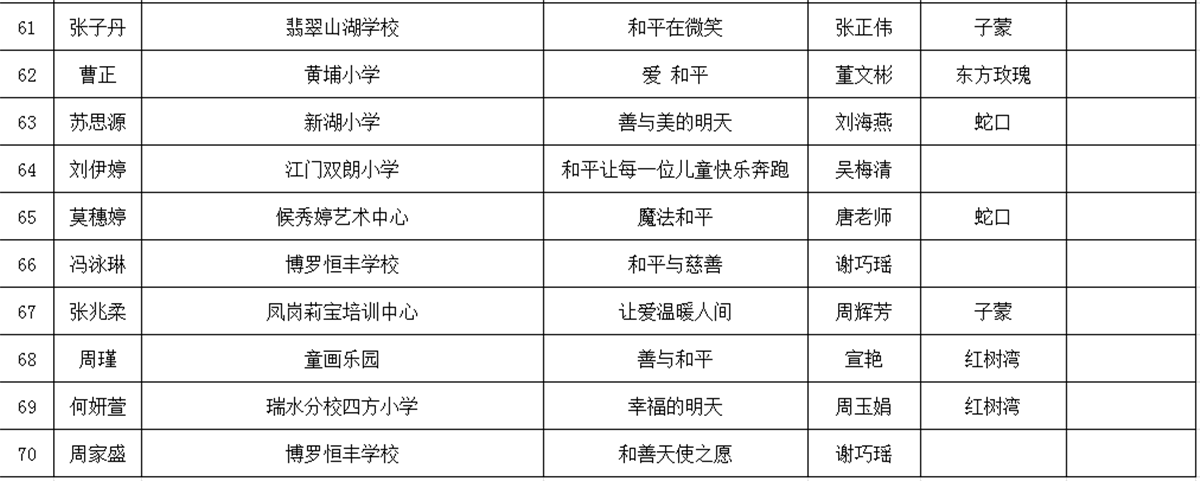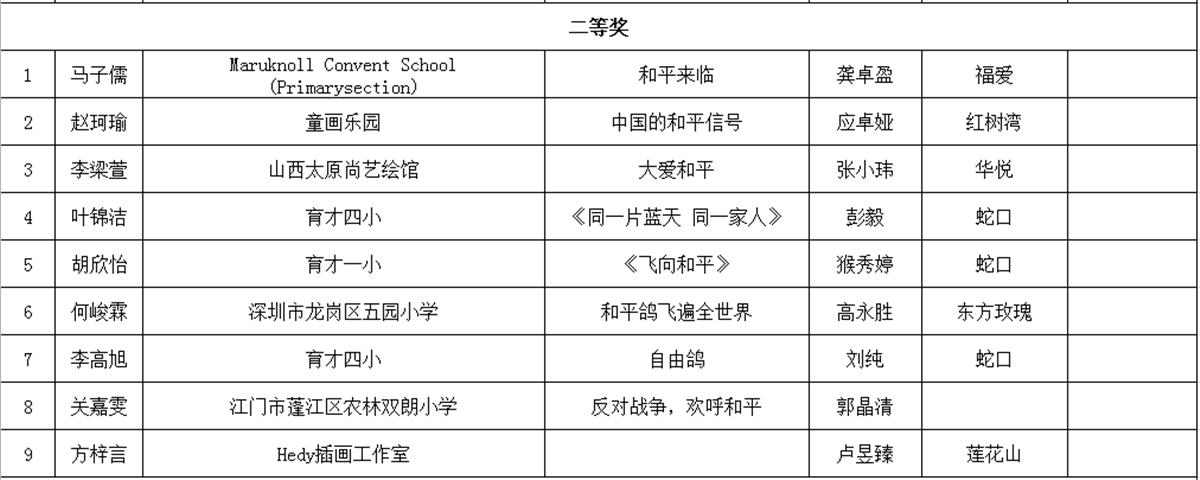 2018·全国少年儿童世界和平海报作品征集活动全国总评审信息汇总表 (B组获奖名单)