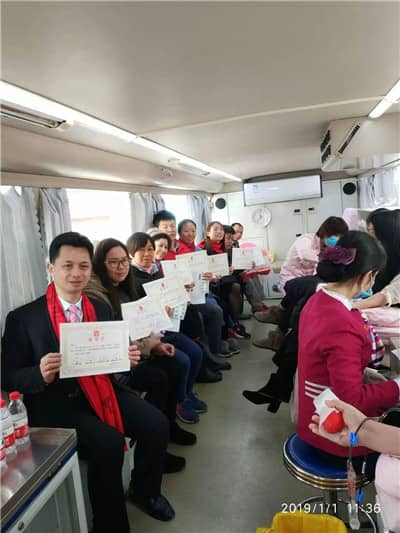 开幕仪式结束后,田王星上届会长登上献血车,对里面正在进行献血的爱心市民表示感谢,也对工作人员和义工们的工作给予肯定,并对献血车的环境进行了考察和建议。