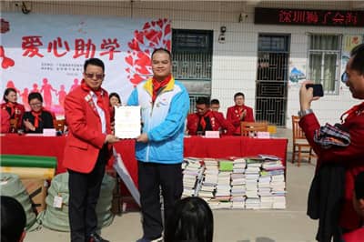 2019年1月12日~13日,深圳狮子会海上云天服务队在茂名信宜市思贺镇大垌小学、江门新会区残疾人联合会举行助学、助残献爱心活动。活动向茂名信宜市恩贺镇大垌小学学生捐赠一批校服、体育器材及图书等,组织江门新会区聋协会员开展新年联谊慰问活动,服务经费4.5万元。