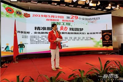 马敏会长热情扬溢的讲话将活动推向了高潮。她代表深圳狮友祝残友伙伴们节日快乐,在这样一个碎片式的信息时代,《让爱托起自强的天空 》的出版发行是对“文化的力量”最好的诠释。随手翻开书页,深切地感受到了书中作者的励志、感恩和爱,朴素的话语记录了残友们对生活、对情感、对梦想等方面的感悟和哲思,承载着“新狮代”残友、狮友们的成长和记忆。她希望更多的人可以看到这本书,让残友们的故事和狮友们的爱传播的更远,影响更多的人关注助残事业,加入到助残行列当中。