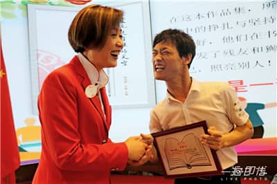 活动中,泽恩中医门诊知名中医韩宗熹狮兄带领专家团队在现场共为50多位残友进行中医咨询、义诊服务。爱心企业深圳市金正江大五金塑胶制品有限公司的代表陈淑欢狮姐向残疾人的孩子捐赠了价值4.5万元的优质童装,还为现场的残友们带来了精美的糕点和饮品。陈淑欢狮姐在致辞中首先祝贺本书的出版发行,对书中的作品质量给予了高度肯定。她表示她和先生创办的企业已经走过了23年的历程,从创办之初就一直都非常注重培养员工的爱心和公益心,公司内部也专门成立了爱心互助基金,主要是用来帮助和关爱有需要的员工。未来将继续为助残事业的蓬勃发展贡献力量。