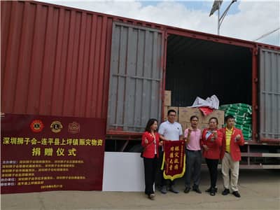 2019年6月9~10日,强暴雨袭击河源市连平县多镇,其中以上坪镇受灾最为严重。灾情发生后,深圳狮子会第一时间启动应急预案,锦绣服务队2019-2020年度候任队长陈赞生和慈善收藏服务队候任队长余小平发动了一场“洪水无情,人间有爱,情系连平,一路同行”的赈灾支援公益行动。6月18日,深圳狮子会2018-2019年度会长马敏主持举办连平县水灾赈灾开拔仪式,短短几天,在深圳狮子会2018-2019年度和平海报委员会主席谢文科、陈赞生候任队长和余小平候任队长的感召下,有9支服务队响应,有53位狮友和一位爱心人士支持。