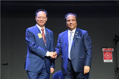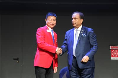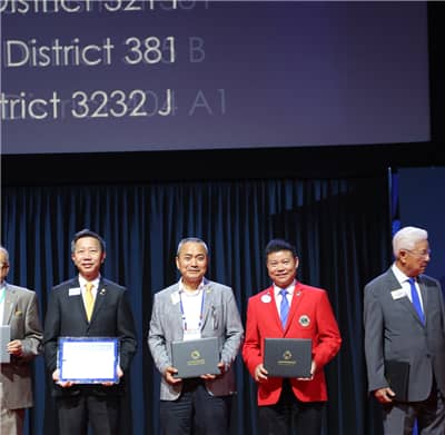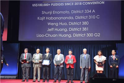 国际狮子基金会主席纳雷什·阿噶沃做了本年度国际狮子基金会及行动100的工作报告,展示了LCIF为世界各地人们提供的服务与帮助,并期待狮友们能够有更多的捐助帮助有需要的人。会上,表彰了2018-2019年度认捐超过10万美元的狮友,纳雷什阿噶沃总会长一一为他们颁奖。中国共有11位获奖,其中深圳狮子会2019-2020年度会长翁华和前会长田王星、肖兴萍、张国筠获奖。