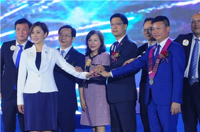 翁华、马敏、卢志强向总赞助单位海南新生泉国际细胞治疗医院有限公司颁发奖牌,海南新生泉国际细胞治疗医院有限公司市场运营总监马坤女士发表祝词,向深圳狮子会2019-2020年度理事会成员的就职表示祝贺,期待与深圳狮子会加强合作,继续推动公益事业的发展。