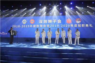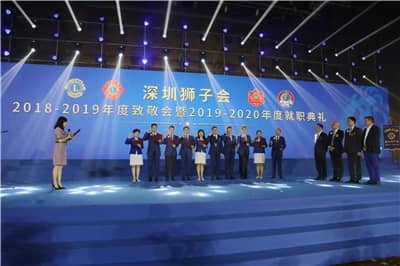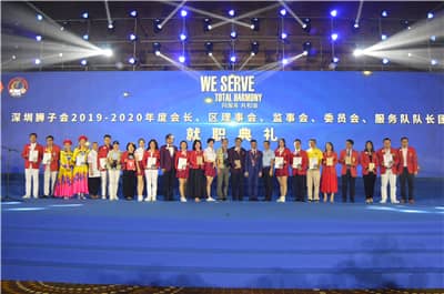2019年7月30日,以“和谐的力量”为主题的深圳狮子会2018-2019年度致敬会暨2019-2020年度就职典礼在会展中心5号馆隆重举行。中国狮子联会驻深圳首席代表、深圳市残联理事长侯伊莎,国际狮子会2019-2021年度理事张国筠,中国狮子联会2019-2021年度监事长林子钰,副会长廖满雄、郑德刚,前监事长苏泽然,前副会长黄昌伟,深圳市残联副理事长宋锐、原副理事长黄纯斌、原副巡视员李卫华、办公室主任黄发科、组宣权保部主任李伦,深圳市关爱办副主任华荣,有关单位领导及嘉宾,港澳303区、广东、大连、北京、浙江、陕西、四川、海南、云南、江苏、吉林等地代表处领导狮友,社会各界代表及深圳狮子会狮友等1000余人出席盛典。晚会由深圳狮子会第一副会长卢志强担任大会主席,由孟春、方士雷、赵卫欣、李君、彭嘉琪主持。