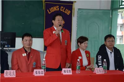 河源市紫金县教育局党组副书记、副局长黄运良,紫金县紫城镇副镇长叶剑光,紫金县紫城镇小学党委书记、紫城中心小学校长温升平,紫城镇荷岗村委会副书记贺建辉、紫金县电视台记者黄少芳;深圳狮子会2018-2019年度第一专区主席廖荣辉、和平、联合、新安、东方玫瑰、锦绣等服务队的狮友代表出席活动。
