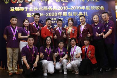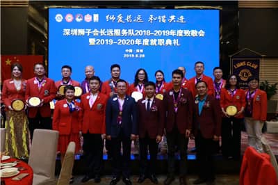 2019年6月28日,深圳狮子会长远服务队“狮爱长远·和谐共进”2019-2020年度换届就职典礼在福田区新华保险大厦二楼宴会厅举行。深圳狮子会2019-2020年度候任会长翁华、候任监事长施建永、候任秘书长杜亨坤、候任财务长彭道坚、候任纠察长杜鹏、候任常务副秘书长李锋、候任副秘书长徐秋彬,候任第三专区主席蔡敏,候任分区主席朱峰、赵辉、魏欣新、吴金枝、叶宁、左红义、刘其海,候任监事会秘书长谭飞,监事王道明、聂向东、李春畅,资政吴泽伟、林言骤及长远服务队狮友、狮友家属、社会爱心人士等210余人出席典礼。典礼由王荣斌担任大会主席,由田欣、高辰函主持。