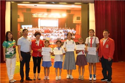 邱红樱主席作总动员讲话,对到场支持的领导狮友及育才集团校领导表达谢意,对本年度和平海报作品征集活动寄予厚望,希望在场的学生可以发动身边的同学朋友一起参与和平海报创作。