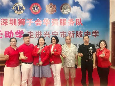 2019年6月25~27日,深圳狮子会华强、高新服务队在梅州市兴宁市开展助学活动,向新陂中学40名贫困学生捐赠8万元助学金,服务经费8万元。
