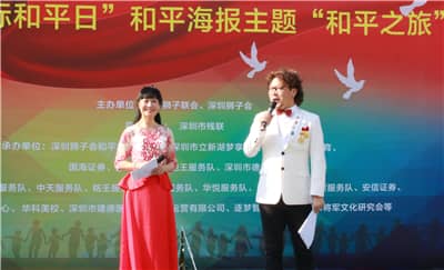 为纪念联合国第三十八个“世界和平日”,传递和平理念,2019年9月21日,深圳狮子会“和平之旅”主题服务推广活动在深圳市立新湖文创梦享公园举办。