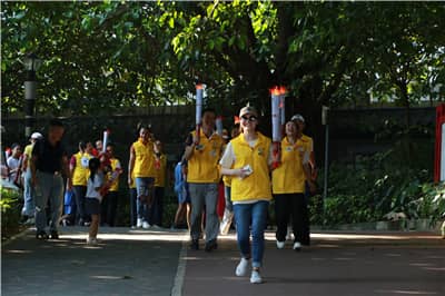 随后,深圳狮子会领导狮友及各承办、各协办单位代表、和平小天使代表上台点亮火炬,并作为火炬交接的第一棒,将火炬郑重地传递到和平海报委员会及各承办、协办单位组成的方队中。第二棒火炬手奋力奔跑,表达对和平的尊重,又将火炬依次传递给和平小天使队伍、学校师生代表队伍和德爱会成员。各方队井然有序地传递着火炬,和平的光辉在每个人心中流转……