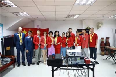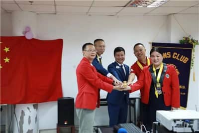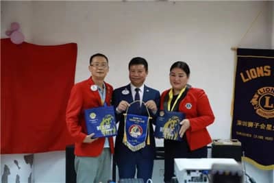 在各位领导狮友的见证下,林强将绶带和钟锤移交给申小琴,两位队长互换礼物并合影留念。翁华会长代表深圳狮子会为两位队长送上礼物以示祝贺。