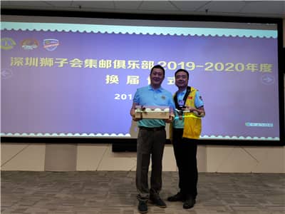 2019年9月19日,深圳狮子会集邮俱乐部2019-2020年度第一次例会暨换届仪式在福田保税区深圳市光科数字科技有限公司召开。会议回顾和总结了集邮俱乐部成立三年来的历程,并举行了2019-2020年度换届仪式,回顾和分享了邮票上关于伟大祖国成立70周年来所取得的巨大成就,进一步提升了会员的爱国情怀和文化修养,促进了狮友之间的友谊。会议由傅文嫱主持。
