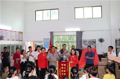 镇南村党支部赖书记感谢正道服务队和南山区民营医疗党总支的爱心人士对留守儿童的关爱,表示将会用好这批爱心物资,将孩子们培养成对社会有用的人。同时,他代表镇南村全体村民向正道服务队赠送锦旗。