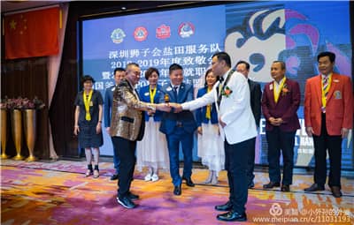 2019年8月2日,深圳狮子会盐田服务队2019-2020年度换届就职典礼以暨与韩国釜山EXPO狮子会结盟13周年庆在盐田区东煌海鲜酒楼举行。深圳市残联理事长侯伊莎,盐田区人大副主任陆卫平、彭兆中,原盐田区委副书记、纪委书记陈继顺,原盐田区政府常务副区长、市人大秘书长、盐田服务队创队队长卢叙查,国际狮子会2019-2021年度国际理事张国筠、中国狮子联会2019-2021年度监事长林子钰,深圳狮子会2019-2020年度会长翁华、监事长施建永、上届会长马敏、第二副会长郭永勇,前会长田王星、肖兴萍,副监事长张健、财务长彭道坚、第五专区主席茹春旭,分区主席方士雷、赵云鹏、杨水金、易书敏、李莉、唐全慧、赵辉、魏欣新、李晓峰、吴金枝、池铭辉、叶宁、左红义、陈冬梅、邓媚心,监事会秘书长谭飞,监事王道明、何薪如,资政林言骤等领导狮友,盐田服务队狮友、狮友家属及爱心人士近400人出席典礼。典礼由薛伟荣担任大会主席,曹严、彭嘉琪主持。