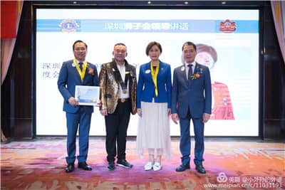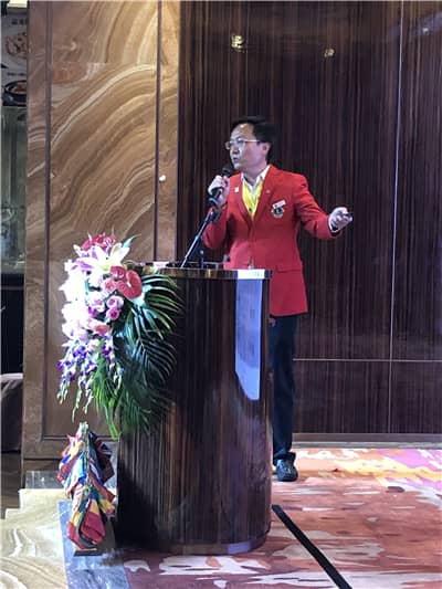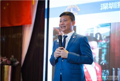大会主席薛伟荣致欢迎词。谭飞秘书长上台介绍深圳狮子会领导。