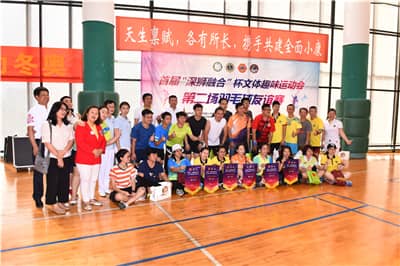 2019年9月28日,深圳狮子会扶贫助残委员会携景峰等59支服务队主办的首届“深狮融合”杯文体趣味运动会暨第二场之国际聋人节羽毛球残健共融赛在深圳市残疾人综合服务中心三楼羽毛球场举行,服务经费8000元。